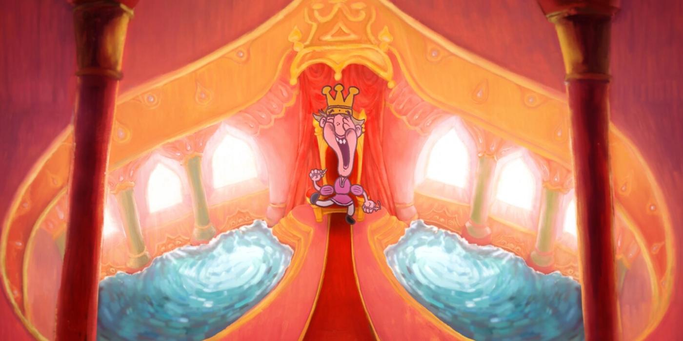 Divus rūķus vajā plūdi, ko izraisījušas bērnišķīgā karaļa asaras. Kad viņi satiekas, karalis sāk ar viņiem spēlēties, pasmaida, un atkal spīd saule. Vēlāk atklājas, kāpēc pēc saules atkal sāk līt...